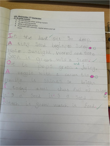 Our class have really enjoyed learning all about 'The Great Fire of London' and have created diary entries from Samuel Pepys explaining the events leading up to and around the time of the fire in 1666. We have also created some art work, linking to our art unit on stencils and created a silhouette of the buildings of the fire in London. In Maths, the year 1 children have showed independent learning with the use of part-whole models and how number sentences work. They can show that the whole number is the equals and the 2 parts are the numbers we add together to get the whole. The year 2 children have been looking at bonds to 10, 20 and even 100 and using related facts to answer number sentences. They have linked that if 4 + 6 = 10, 14 + 6 = 20 that must mean that 40 + 60 =100. We have have enjoyed the story 'The enormous turnip' in English and have been looking at the setting of a vegetable garden and using our 5 senses to describe the garden. We even went to the school vegetable patch to bring our writing to life. We used some great adjectives to describe what they could see, hear, feel and smell.