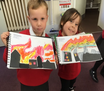 Before the half term, we invited our parents and carers into school to see our Great Fire of London. We had made some fantastic home learning project houses, which were made from straw, cardboard and wood. This was a replica of the houses that were in London at the time of the Great fire. We shared our home learning projects in celebration assembly before we set fire to them. We were amazed by how the fire spread so easily and the afternoon was very much enjoyed by all! We have also been enjoying the story of 'The Naughty bus' by Jan and Jerry Oke and have been creative in acting out our own versions of the story and writing speech bubbles to explain what happened in our story. In maths, we carried out some practical maths activities in pairs to investigate finding part of a number.