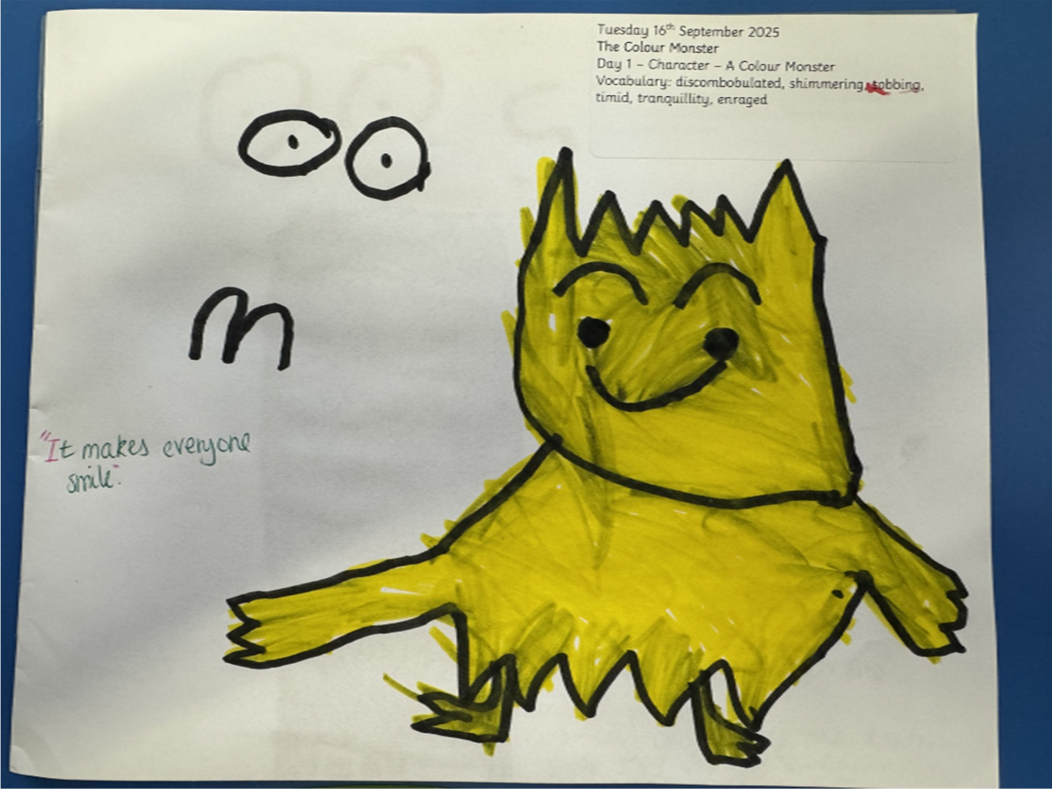 Huge congratulations to our new Ruby Class children who have all started school for the first time this year. We have settled well into school life and have already been so busy with our learning. This week has been a particularly exciting week of learning! Fred Frog has been busy helping us to read and write the sounds m, a, s, d, and t – and we're already blending them together like phonics superstars! We also completed our very first Drawing Club sessions , where we explored some fantastic new words: timid, sobbing, shimmering, enraged, tranquillity, and even discombobulated! Mrs Death and Mrs Greenwood have been absolutely blown away by our incredible imaginations, creative drawings, and clever magic codes. What a brilliant start to the term.
